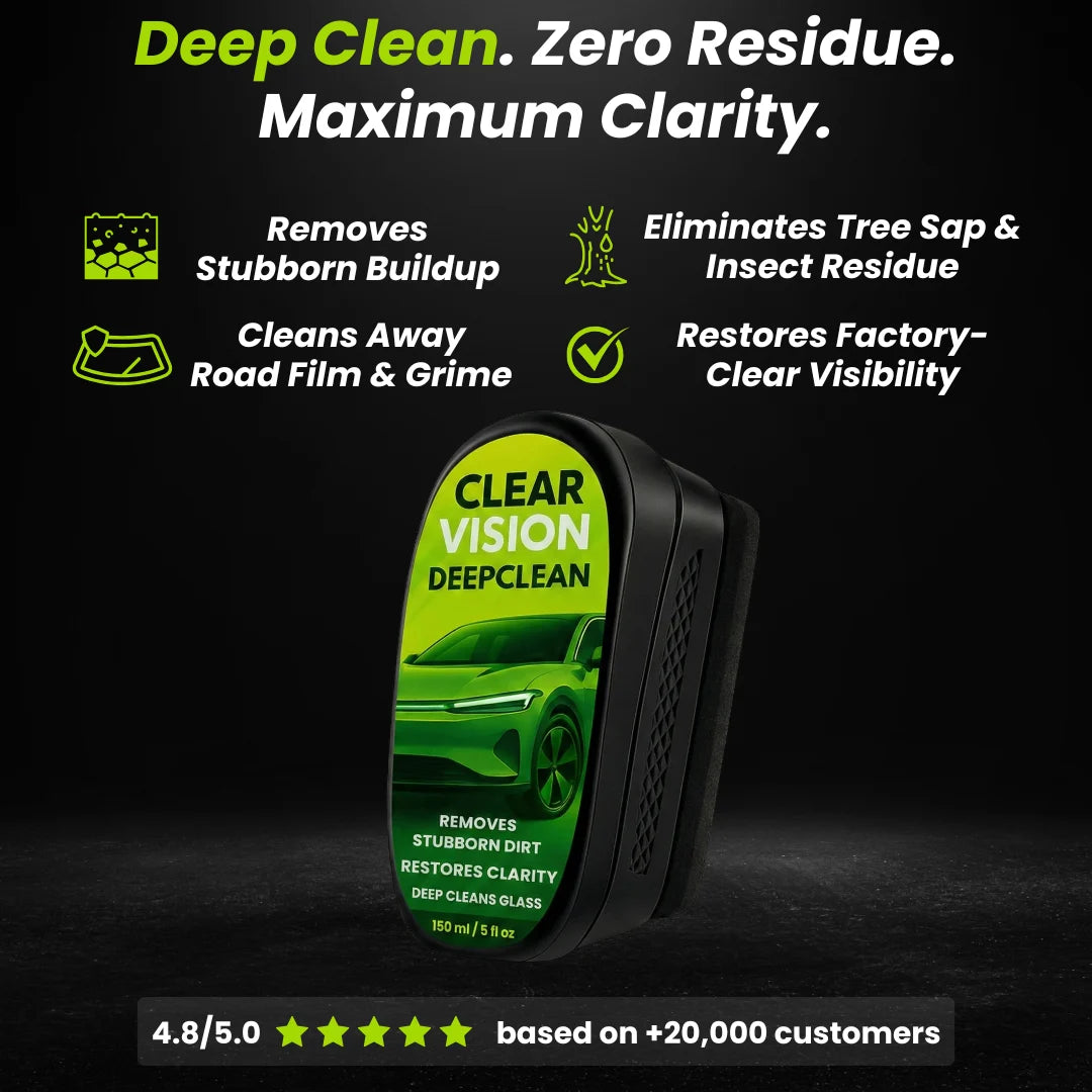 Regular cleaners only touch surface dirt. DeepClean breaks the molecular bonds of tree sap, hard water deposits, and road film that have fused to your glass over time.