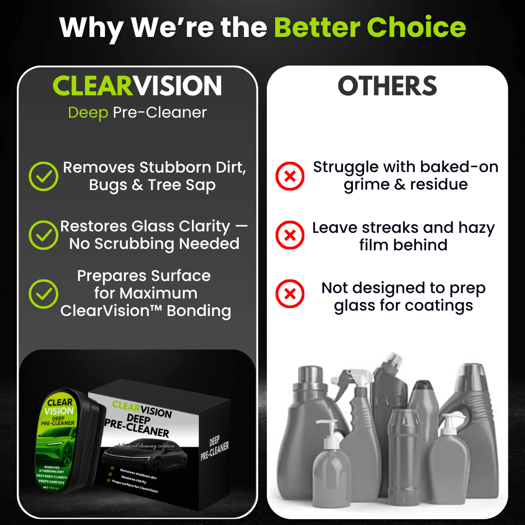 Deep Pre-Cleaner doesn’t add a protective or hydrophobic layer. That’s what ClearVision™ is for.